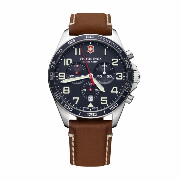 FieldForce Chrono ø42, blue dial, brown leather strap, Movimiento: cuarzo analógico Forma de la caja: redondeada Diámetro: 42 mm Color de la esfera: azul Material del brazalete: cuero