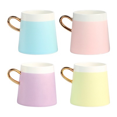 Taza fabricada en cerámica con asa en terminado dorado, capacidad 12 onzas ( 360 ml ).